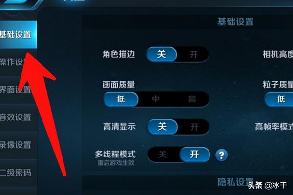 2、在游戏设置中,这里有 基础设置,操作设置,界面设置等各个设置入口,这里只需要点击基础设置即可。